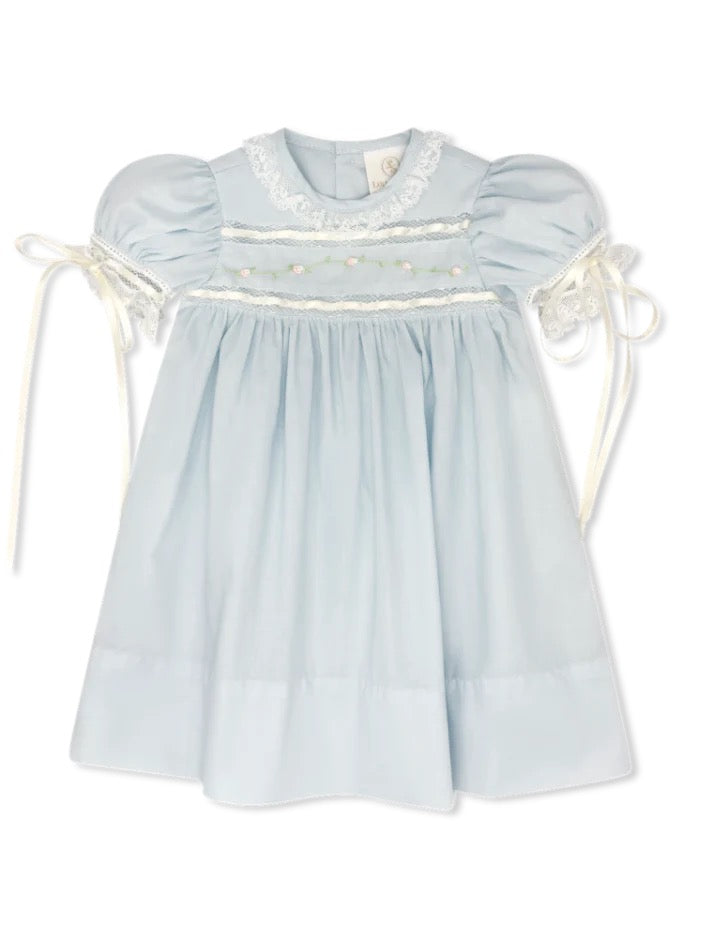 Tea Roses Smock Bishop Dress- Blue