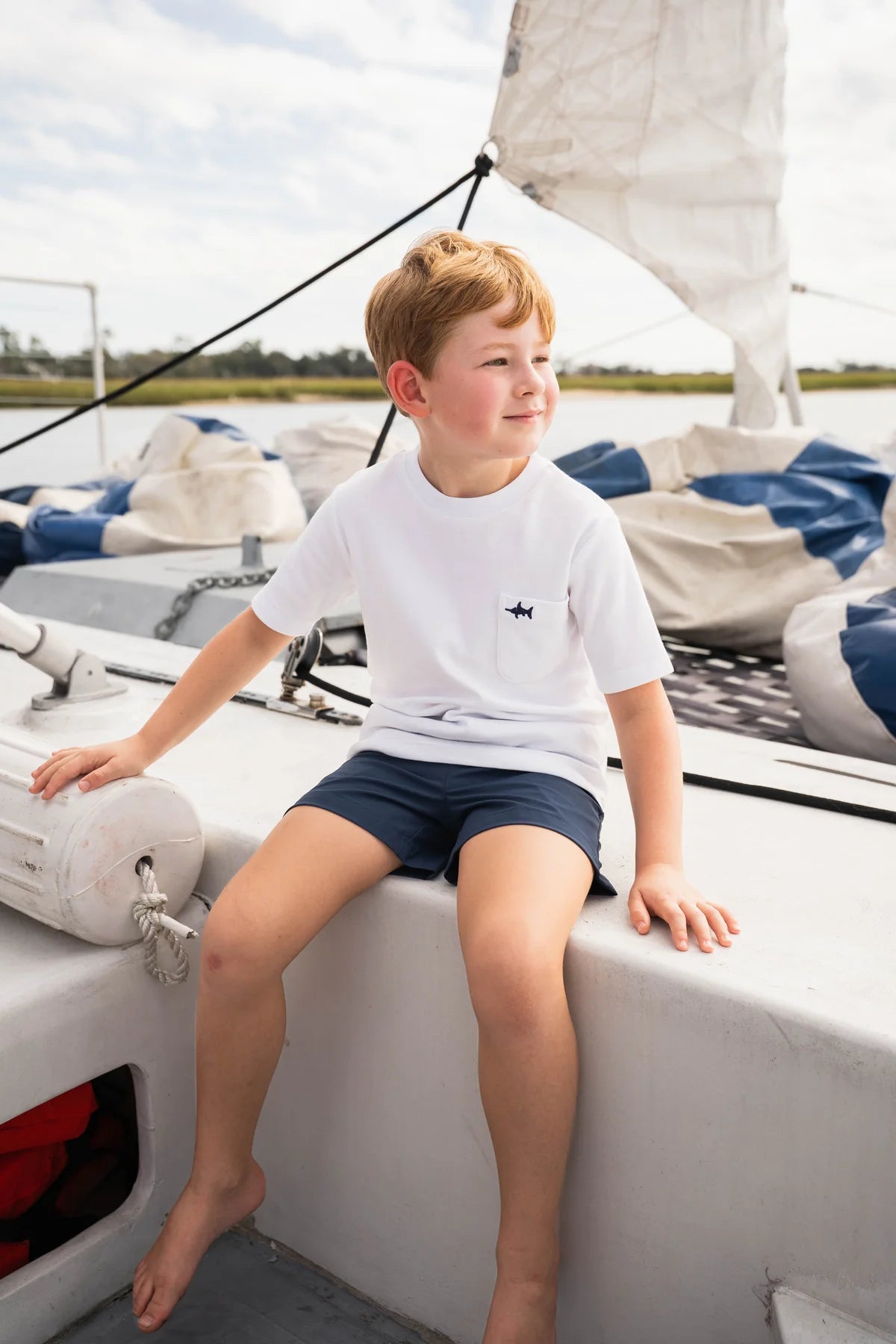 Designed with a classic fit and finished with our embroidered logo on the front pocket, it’s the elevated basic every boy needs in his closet. Whether styled with our performance shorts, swim trunks, or everyday play shorts, this versatile white tee creates an effortless summer outfit for boys.